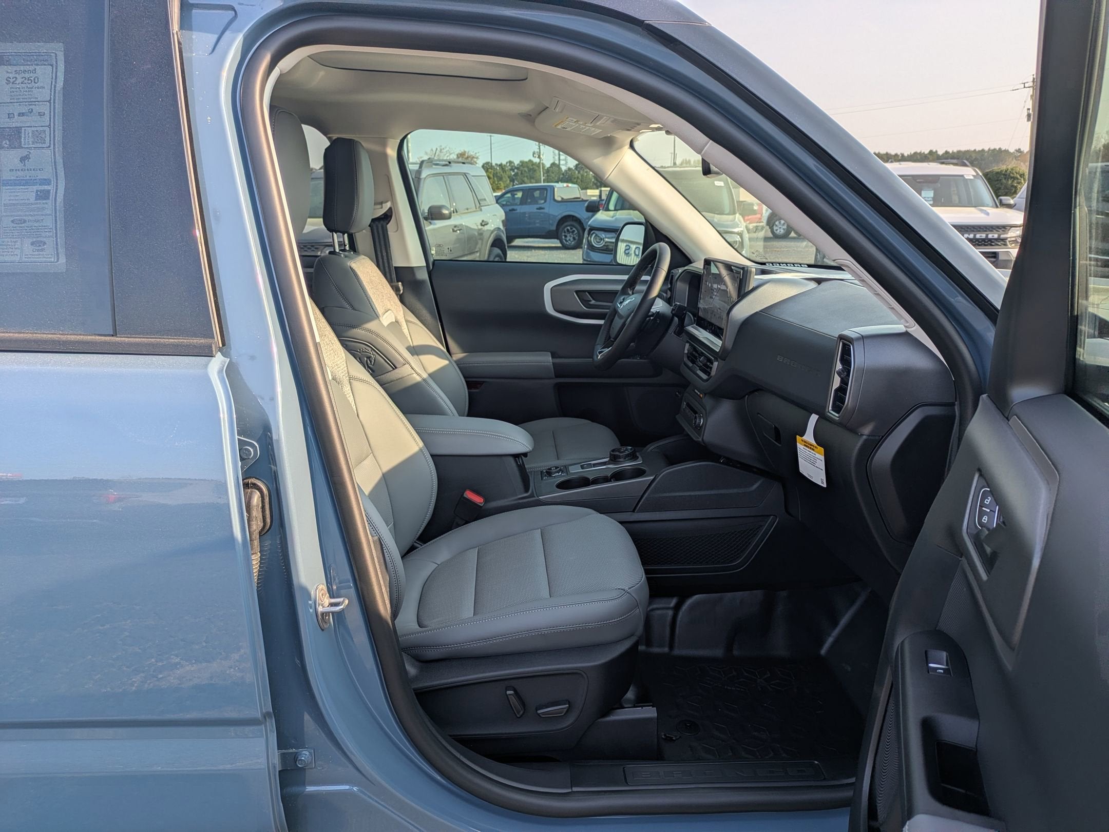 2026 Ford Badlands Bronco Sport 4-Wheel Disc Brakes, 6 Speakers, ABS brakes, Air Conditioning, Alloy wheels, AM/FM radio: SiriusXM with 360L, AM/FM Stereo, Apple CarPlay/Android Auto, Auto High-beam Headlights, Auto-dimming Rear-View mirror, Automatic temperature control, Badlands Tech Package, Brake assist, Cargo Management System (Shelf/Divider/Table), Compass, Connected Navigation (1-Year Included), Delay-off headlights, Driver door bin, Driver vanity mirror, Dual front impact airbags, Dual front side impact airbags, Electronic Stability Control, Emergency communication system: SYNC 4 911 Assist, Equipment Group 400A Standard Package, Exterior Parking Camera Rear, Ford Connectivity Package (1-Year Included), Four wheel independent suspension, Front anti-roll bar, Front Bucket Seats, Front Center Armrest, Front fog lights, Front License Plate Bracket, Front reading lights, Fully automatic headlights, Heated door mirrors, Heated front seats, Heated steering wheel, Illuminated entry, Internet access capable: 5G Modem - Ford Connectivity Package, Knee airbag, Leather-Trimmed Heated Front Sport Contour Bucket Seats, Low tire pressure warning, Memory seat, Noise Reduction Module, Occupant sensing airbag, Outside temperature display, Overhead airbag, Overhead console, Panic alarm, Passenger door bin, Passenger vanity mirror, Power door mirrors, Power driver seat, Power Moonroof, Power passenger seat, Power steering, Power windows, Radio data system, Radio: HD w/B&O Sound System by Bang & Olufsen, Rear anti-roll bar, Rear reading lights, Rear seat center armrest, Rear window defroster, Rear window wiper, Remote keyless entry, Security system, SiriusXM with 360L, Speed control, Speed-sensing steering, Speed-Sensitive Wipers, Split folding rear seat, Steering wheel mounted audio controls, SYNC 4 with Enhanced Voice Recognition, Tachometer, Telescoping steering wheel, Tilt steering wheel, Traction control, Trip computer, Variably intermittent wipers, Wheels: 17" Matte Black-Painted Aluminum.