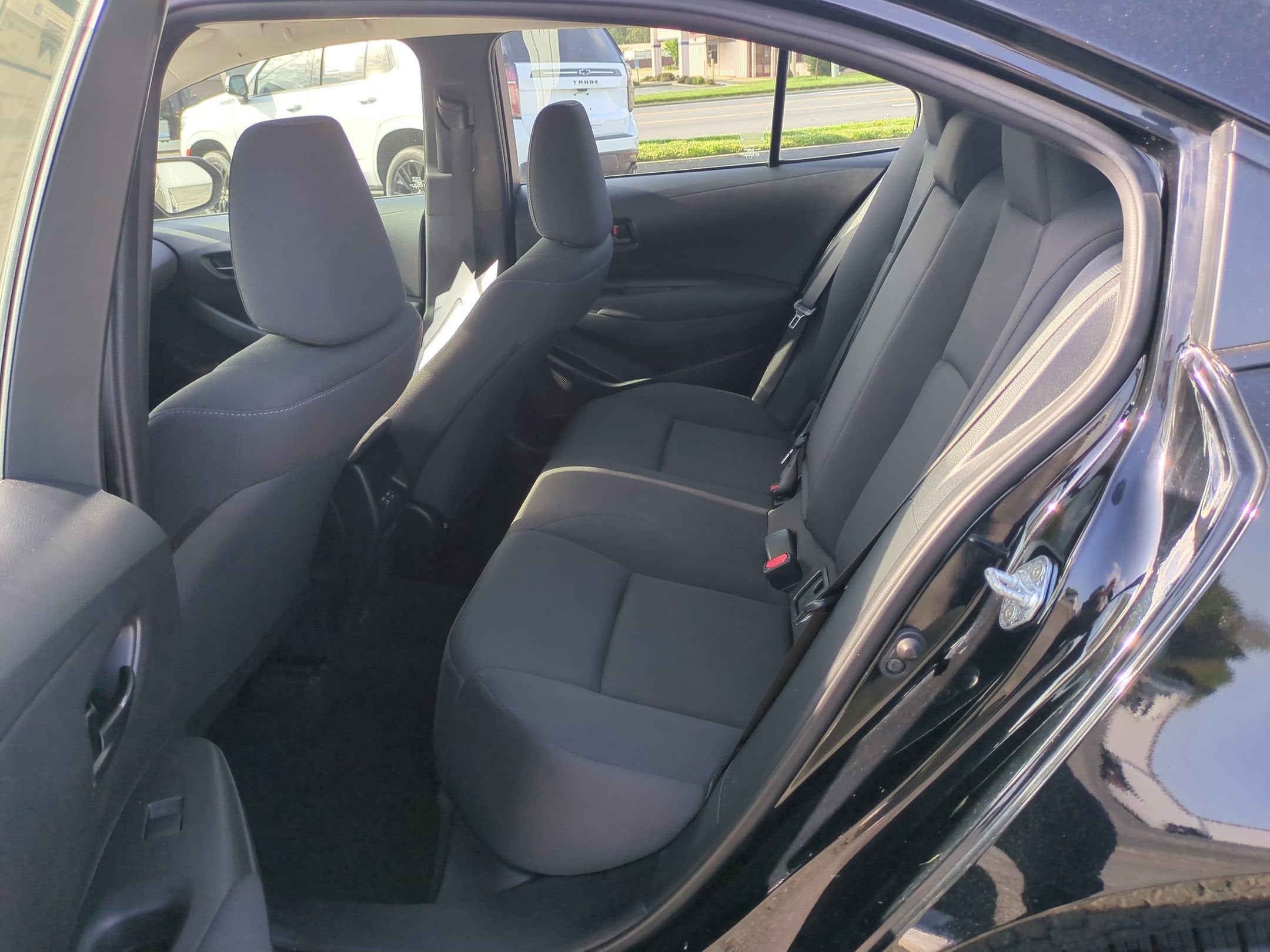 Midnight Black 2023 Toyota Corolla LE 4-Wheel Disc Brakes, 6 Speakers, ABS brakes, Air Conditioning, AM/FM radio: SiriusXM, Auto High-beam Headlights, Automatic temperature control, Brake assist, Bumpers: body-color, Delay-off headlights, Driver door bin, Driver vanity mirror, Dual front impact airbags, Dual front side impact airbags, Electronic Stability Control, Emergency communication system: Safety Connect (up to 10-year trial subscription), Exterior Parking Camera Rear, Front anti-roll bar, Front Bucket Seats, Front Center Armrest, Front reading lights, Front wheel independent suspension, Fully automatic headlights, Illuminated entry, Knee airbag, Low tire pressure warning, Occupant sensing airbag, Outside temperature display, Overhead airbag, Panic alarm, Passenger door bin, Passenger vanity mirror, Power door mirrors, Power steering, Power windows, Premium Fabric Seat Trim, Radio data system, Radio: 8" Toyota Audio Multimedia, Rear anti-roll bar, Rear seat center armrest, Rear side impact airbag, Rear window defroster, Remote keyless entry, Speed control, Split folding rear seat, Steering wheel mounted audio controls, Tachometer, Telescoping steering wheel, Tilt steering wheel, Traction control, Trip computer, Variably intermittent wipers, Wheels: 16" Wide Vent Steel. LE