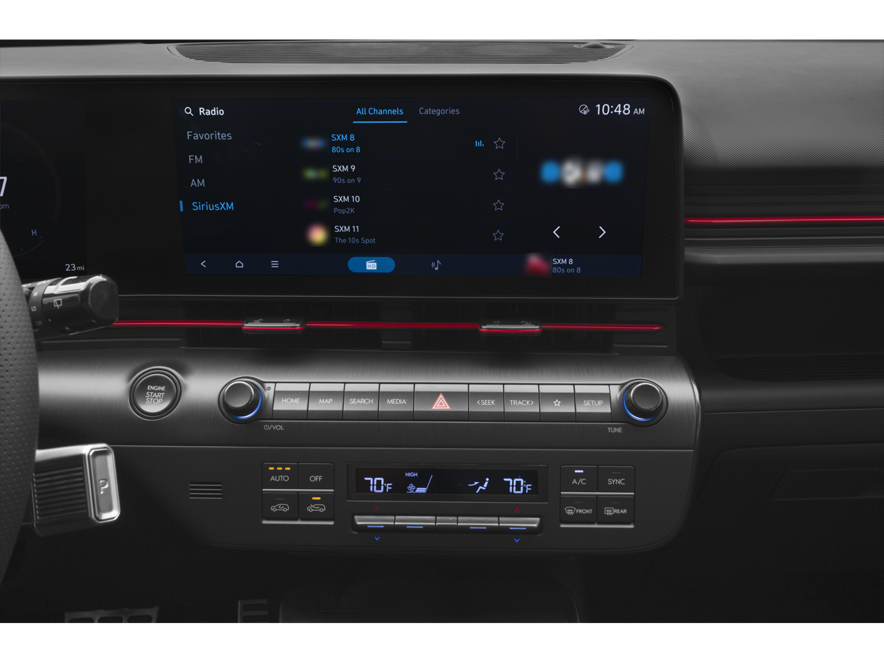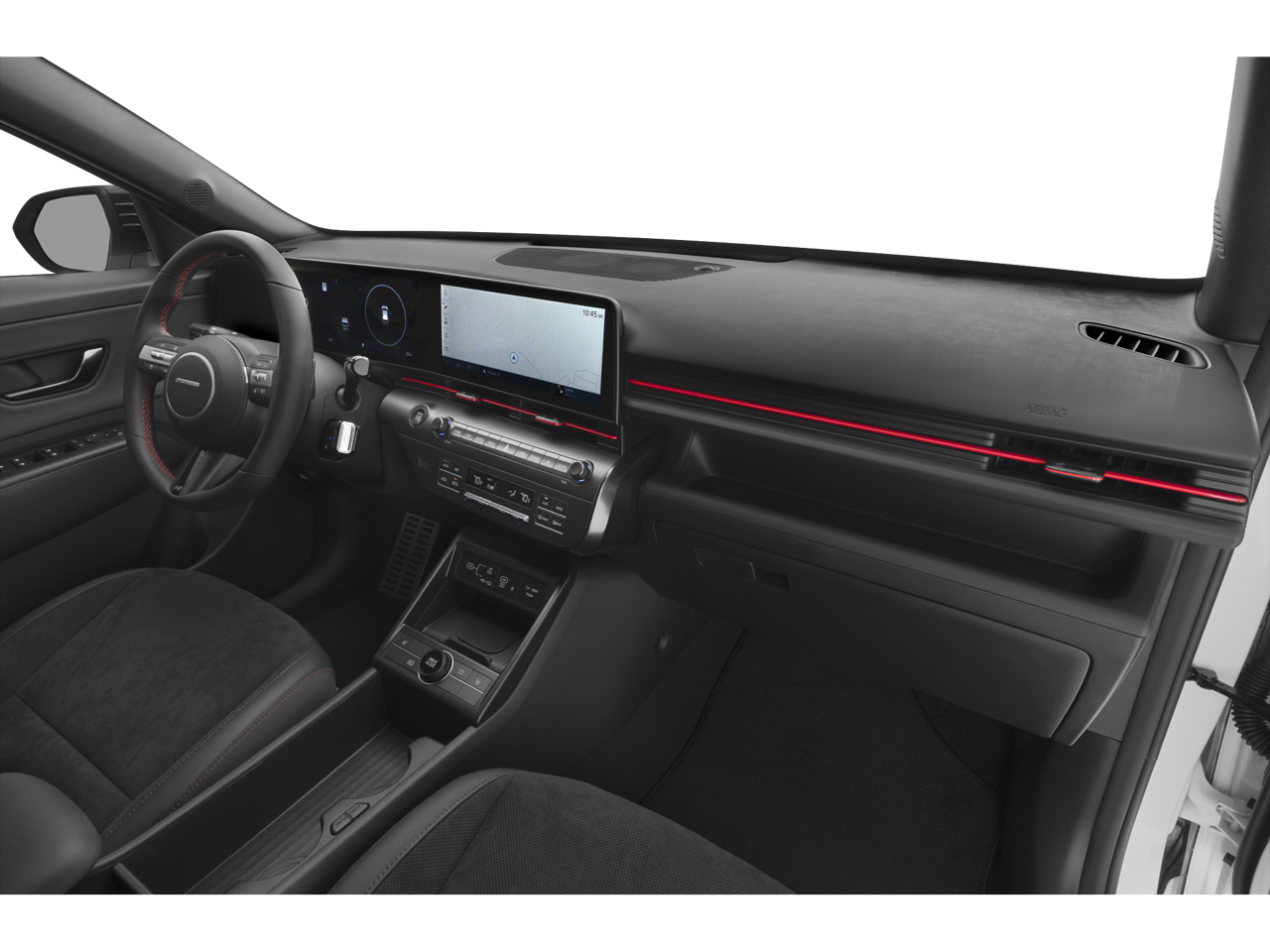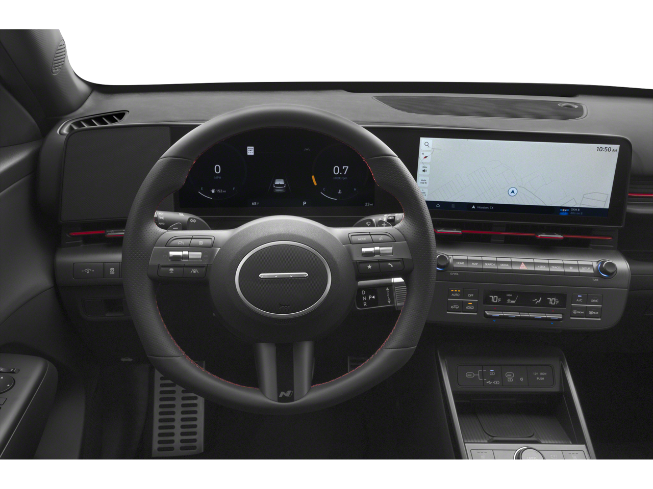 3.510 Axle Ratio, 4-Wheel Disc Brakes, 8 Speakers, ABS brakes, Air Conditioning, Alloy wheels, AM/FM radio: SiriusXM, Apple CarPlay & Android Auto, Auto High-beam Headlights, Auto-dimming Rear-View mirror, Automatic temperature control, Brake assist, Bumpers: body-color, Cargo Tray, Carpeted Floor Mats, Column-Mounted Shift-By-Wire, Delay-off headlights, Driver door bin, Driver vanity mirror, Dual front impact airbags, Dual front side impact airbags, Electronic Stability Control, Emergency communication system: Bluelink+, Exterior Parking Camera Rear, First Aid Kit, Four wheel independent suspension, Front anti-roll bar, Front Bucket Seats, Front Center Armrest, Front dual zone A/C, Front reading lights, Fully automatic headlights, Heated door mirrors, Heated front seats, Heated Front Sport Bucket Seats, Illuminated entry, Leather Shift Knob, Leather steering wheel, Low tire pressure warning, N-Line Alcantara Sport Combination Seat Trim, Navigation System, Occupant sensing airbag, Option Group 01, Outside temperature display, Overhead airbag, Panic alarm, Passenger door bin, Passenger vanity mirror, Power door mirrors, Power driver seat, Power moonroof, Power steering, Power windows, Radio: AM/FM/HD Radio/SiriusXM Audio System, Rear anti-roll bar, Rear seat center armrest, Rear window defroster, Rear window wiper, Remote keyless entry, Security system, Speed control, Speed-sensing steering, Split folding rear seat, Spoiler, Steering wheel mounted audio controls, Tachometer, Telescoping steering wheel, Tilt steering wheel, Traction control, Trip computer, Turn signal indicator mirrors, Variably intermittent wipers, Wheels: 19" x 7.5J Metallic Alloy.